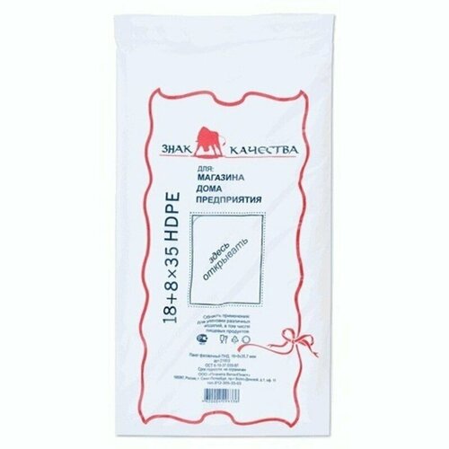 Пакет фасовочный Знак качества ПНД 7 мкм 18+8х35 см 1000 штук, 21902