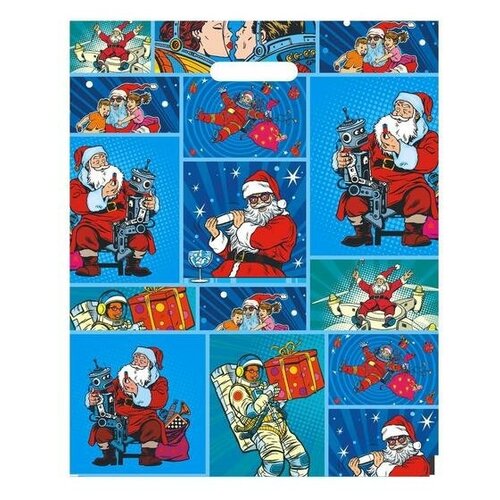 Набор новогодних пакетов, полиэтиленовые с вырубной ручкой, 20х30 см, 30 мкм, 10 штук
