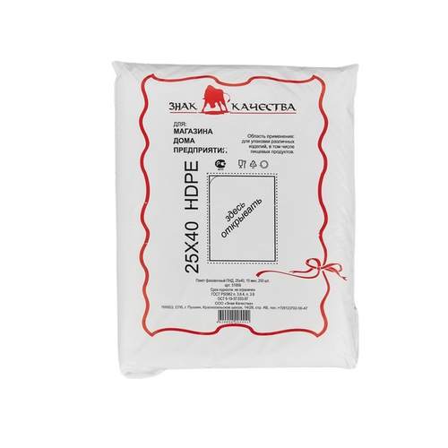 Пакет фасовочный Знак качества Пакет фасовочный ПНД 25х40 15мкм, 250 шт