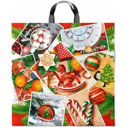 Пакет с петлевой ручкой ПВД "Коллаж" 44*44/70 мкм (25 шт.)