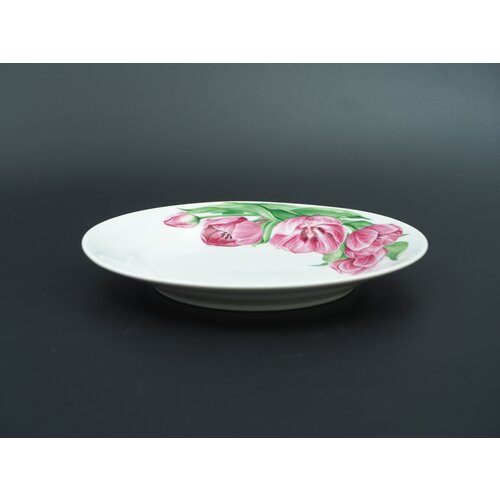 Тарелка мелкая Дулевский фарфор "Розовые тюльпаны", круг, диаметр 17,5 см