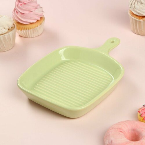 Тарелка "Сковорода", керамика, зеленая, 21х15 см, Иран