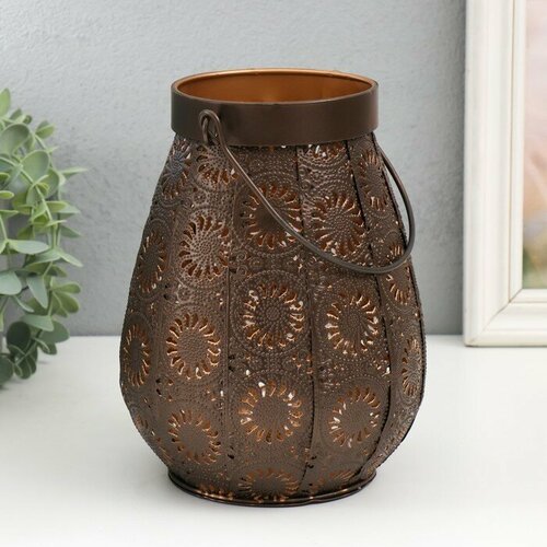 Подсвечник металл, стекло на 1 свечу "Цветы Востока" d=6,5 см коричнево-медный 16х19 см