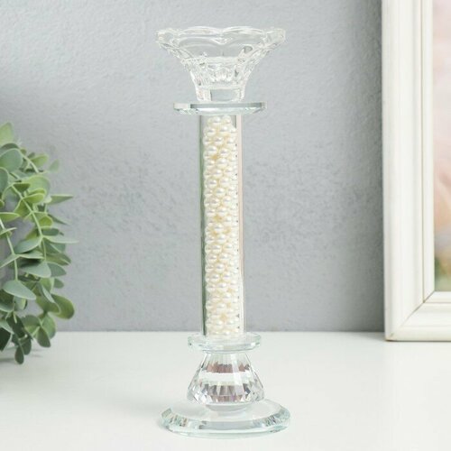Подсвечник стекло на 1 свечу "Чаша на ножке с бусинами" прозрачный d=2,3 и 4 см 7х7х20,5 см 970282