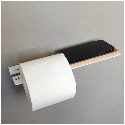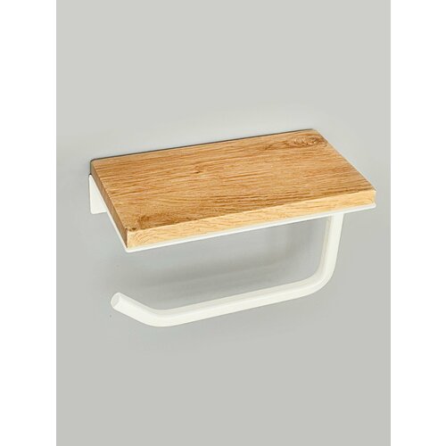Полка №1 Держатель туалетной бумаги с полочкой "Дуб беленый" на белом белый