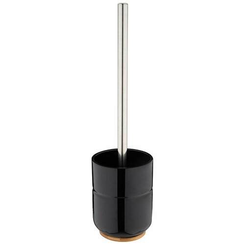 Туалетная щетка ручка из нержавеющей стали, чаша из керамики на основании из бамбука