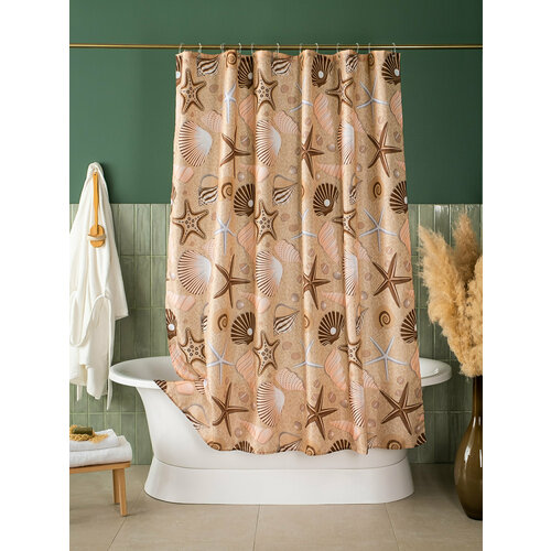Занавеска (штора) Shеll для ванной комнаты тканевая 180х180 (шхв)см, цвет бежевый
