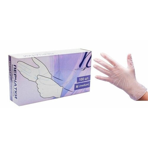 WHITE LINE, Перчатки виниловые ПВХ неопудренные, прозрачные, р-р L, (50 пар/упак)