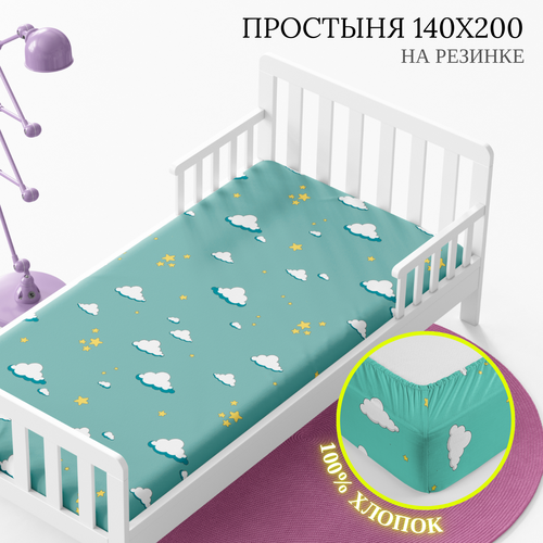 Простынь 140х200 см, на резинке детская WAKE me WAKE Луна, перкаль, 100% хлопок