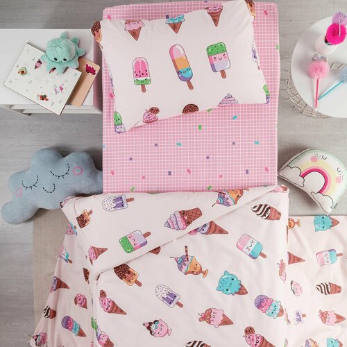Преимущества:- Гипоаллергенный и дышащий материал- Эксклюзивный дизайн, который понравится вашему ребенку- Наволочка с клапаном для удобной фиксации- Простыня подшита для долговечности- Пододеяльник с прорезями для удобного использования- 100% натуральный хлопок