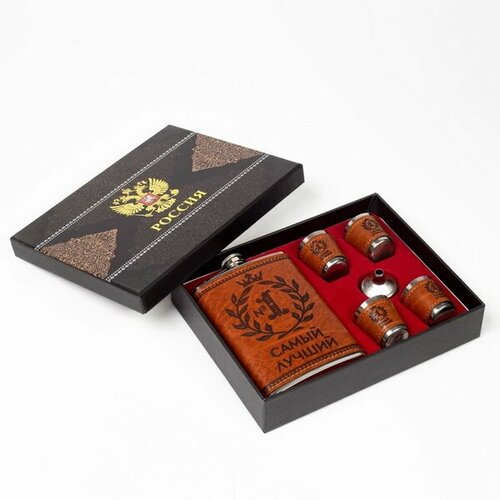 Подарочный набор 6 в 1 "Самый лучший": фляжка 270 мл, 4 стопки по 40 мл, воронка
