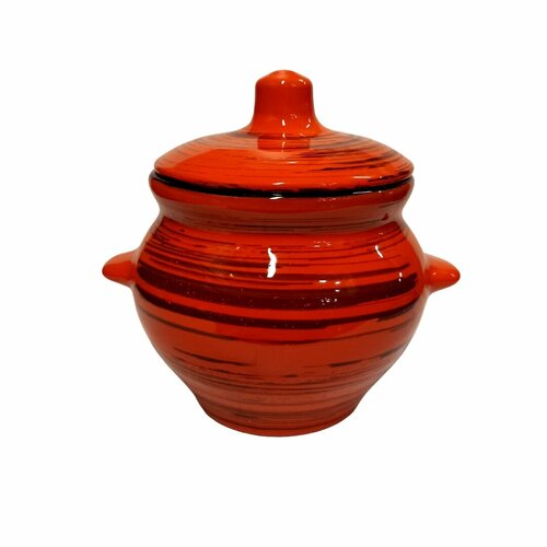 Горшок для жаркого 0,5л с ручками оранж. полоска 101590 Рыжий кот