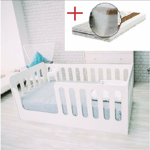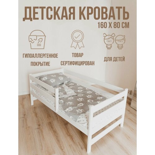 Детская кровать манеж ЭКО из массива березы, белая, 1600х800 мм, без ящиков
