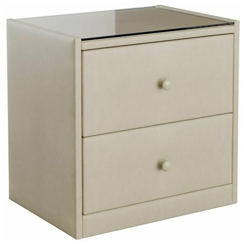 Тумба прикроватная Куба, КЗ Бежевый, спальное, с ящиками, обивка, стекло