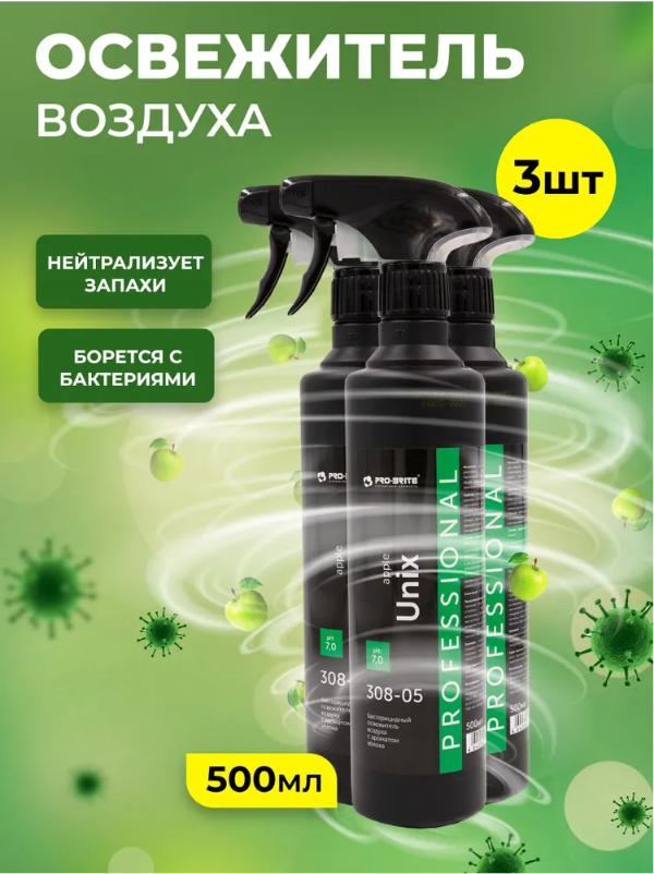 Освежитель воздуха Pro-Brite Unix яблочный, 500 мл х 3 шт 600013889408