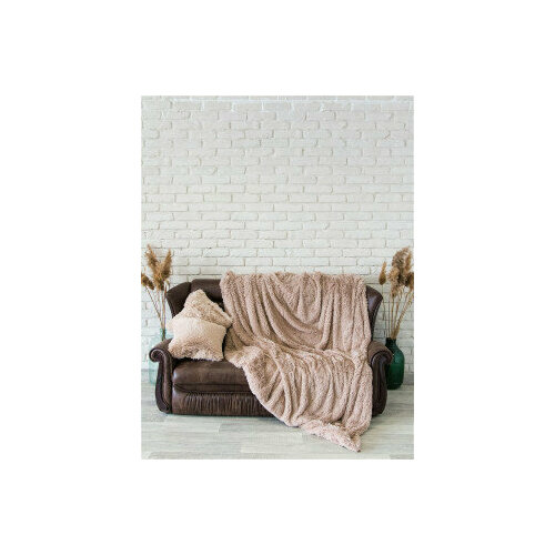 Пушистый меховой плед "Травка" с длинным ворсом цвет Кофе с молоком , Евро 200-220