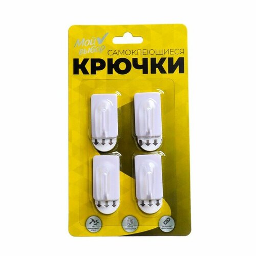 Мой выбор Крючки самоклеящиеся, круглые, с системой бесследного удаления, набор, 2,2 х 3,5 см, 4 шт.