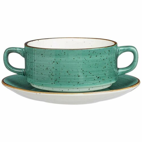 Набор из 6 штук Бульонница с блюдцем Bronco "Nature" 250мл, мятный, фарфор (263-1113/6)