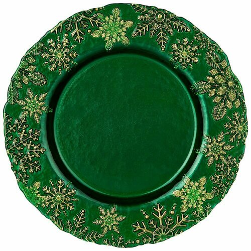 Набор из 6 штук Тарелка подстановочная Bronco "Celebration" green, диаметр 33см, стекло (336-166/6)