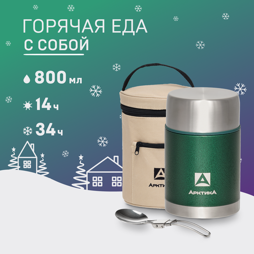 Термос для супа и еды Арктика 306-800А с широким горлом, с чехлом и ложкой