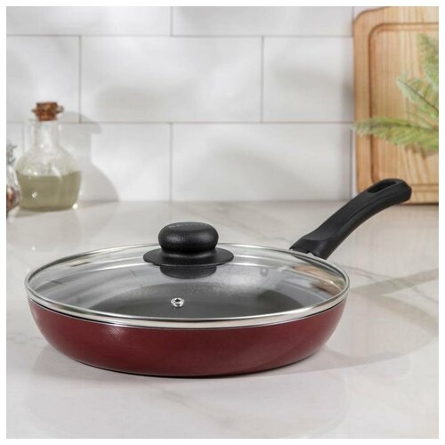 Сковорода «Альфа», d=22 см, съёмная ручка, стеклянная крышка, антипригарное покрытие, цвет бордовый