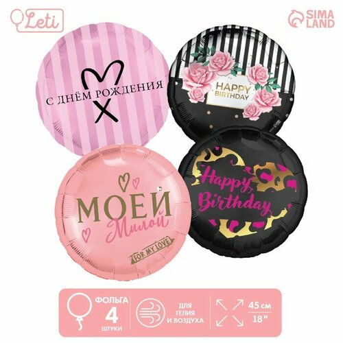 Букет шаров «С днём рождения», для девушки, фольга, набор 4 шт.