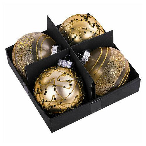 Шары ёлочные 4 шт, 8 см, "Constellation", пластик, цвет: с узором, золотая сказка, 591996