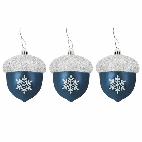 Украшение елочное Золотая сказка "Желуди", 3 шт, 9х8 см, пластик, цвет темно-синий/серебро
