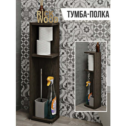 Тумба Rick Wood Тумбочка узкая напольная в ванную и туалет, 18х70.3х13 см, Венге цвет