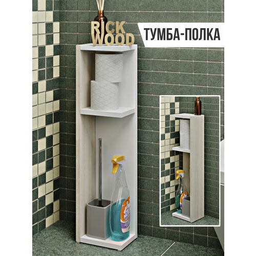 Тумба Rick Wood Тумбочка узкая напольная в ванную и туалет, 18х70.3х13 см, Сонома Белый цвет