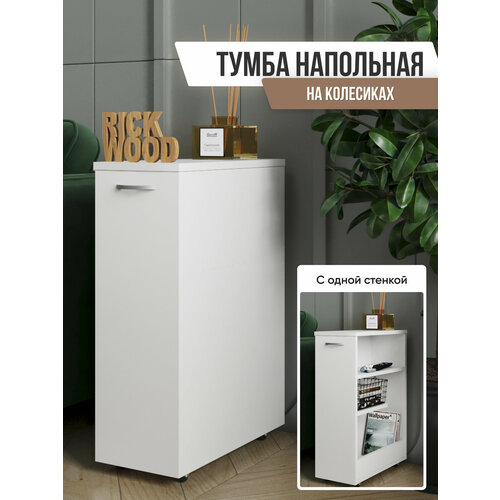 Тумба Rick wood тумбочка в прихожую узкая на колесиках 45х66х21 см, Белый цвет