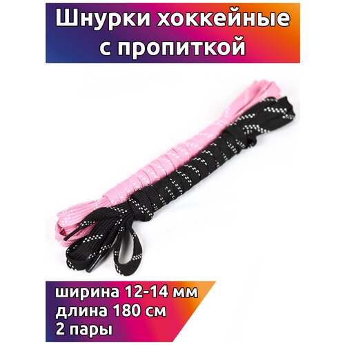 Шнурки хоккейные 12-14 мм цв. черный розовый с белыми точками 180 см уп.2 пары