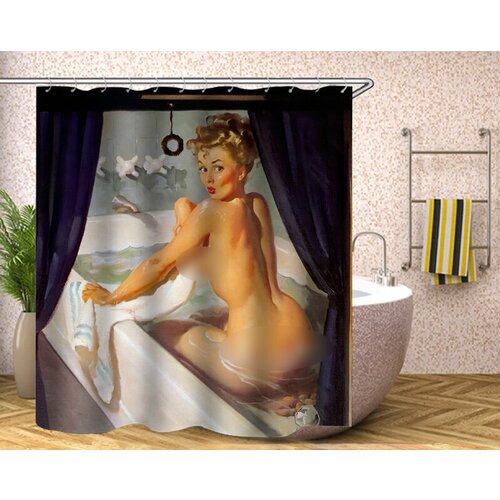 Штора для ванной / душа водоотталкивающая, текстильная с кольцами, 180 x 180 см Девушка 4