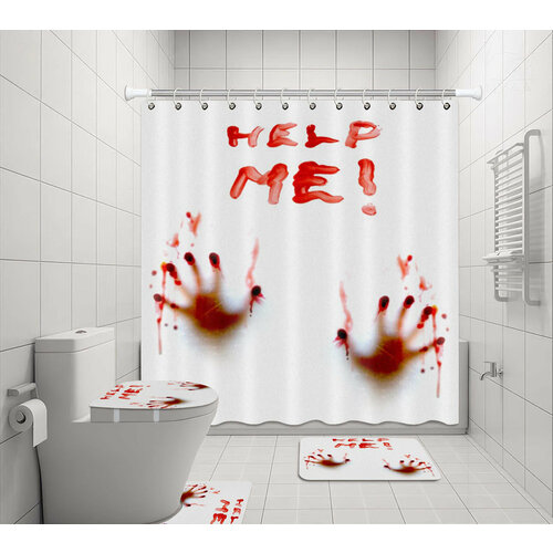 Штора (занавеска) для ванной / душа водоотталкивающая тканевая с кольцами 180 x 180 см Ужастик