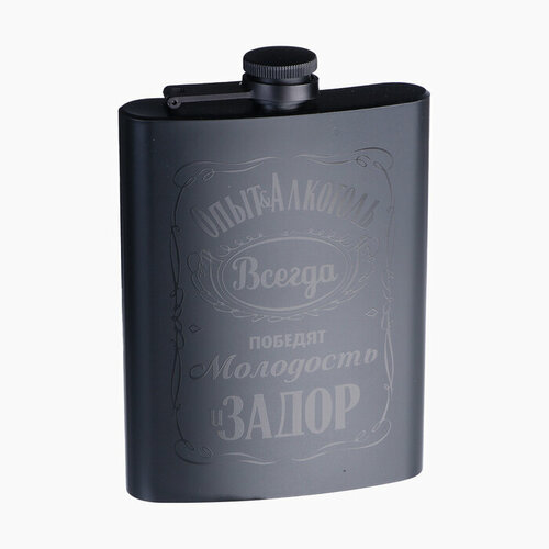 Фляжка для алкоголя и воды "Опыт и алкоголь", нержавеющая сталь, подарочная, 240 мл, 8 oz