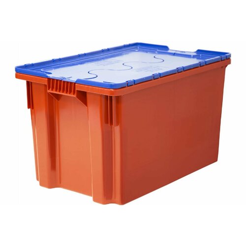 Ящик п/э 600х400х300, сплошной, синий с оранжевой крышкой Тара. ру 3 шт.