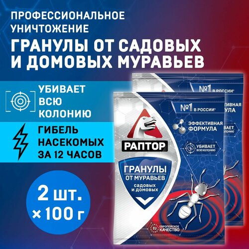 Гранулы от муравьев в саше, Раптор, Средство от домашних и садовых муравьев, 100 г х 2 шт.