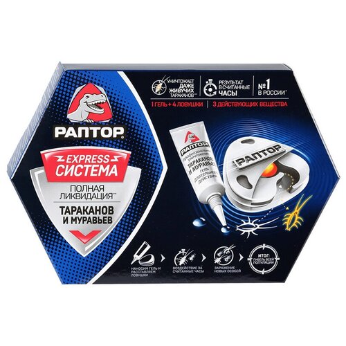 Средство защиты раптор Система ликвидации тараканов и муравьев Ловушки + гель 4шт