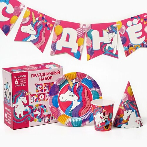 Набор бумажной посуды на 6 персон "С Днем Рождения", Минни Маус и Единорог 9364769