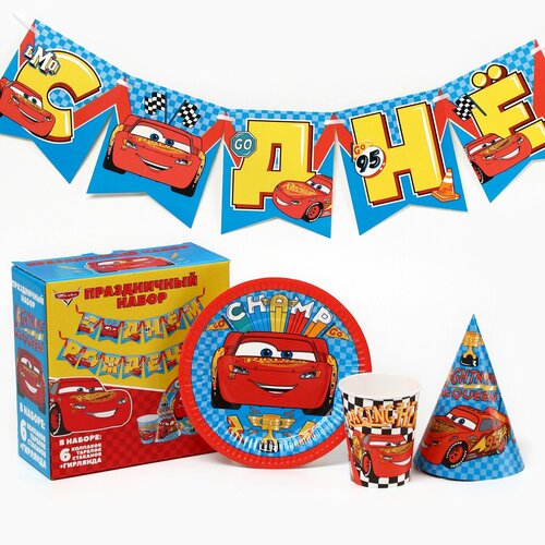 Набор бумажной посуды, на 6 персон "С Днем Рождения", Тачки