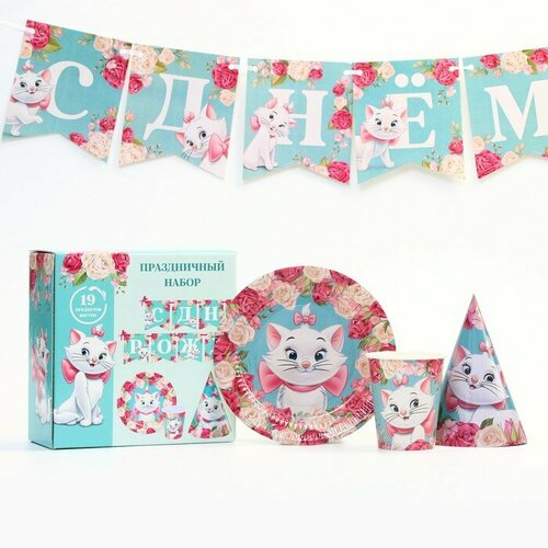 Набор бумажной посуды, на 6 персон "С днем рождения!", Коты Аристократы