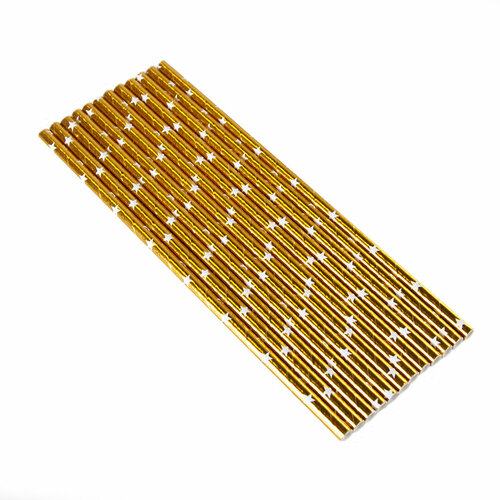 Трубочки для коктейлей, Белые звезды, Золото, металлик, 12 шт.