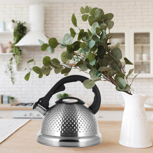 Чайник 2,5л из нержавеющей стали со свистком и ручкой из нейлона (арт. 100302)