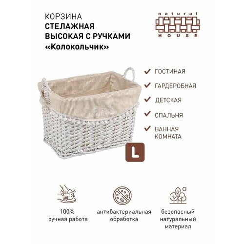 Стеллажная корзина Natural House "Natural Life" 35х22х18 см, плетеная, натуральный бежевый, белый
