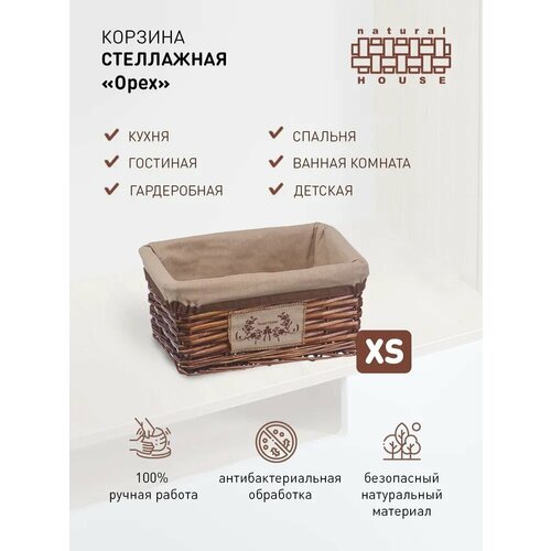 Корзина стеллажная "Орех" Natural House, 28х19х13 см, плетеная