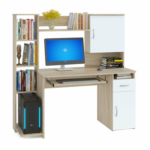 СОКОЛ компьютерный стол Дуглас КСТ-16, ШхГхВ: 120х60х160 см, цвет: дуб сонома/белый