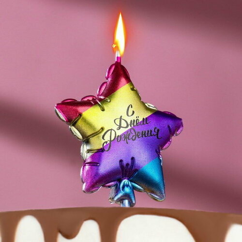 Свеча в торт "С днем рождения. Звезда", 5.5 см, разноцветная