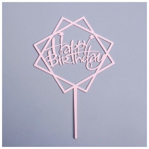 Топпер «С днём рождения», акрил, цвет нежно-розовый