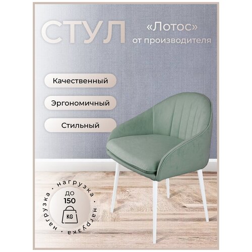 Стул для кухни, дома, офиса Лотос, ноги белый металл, мятный