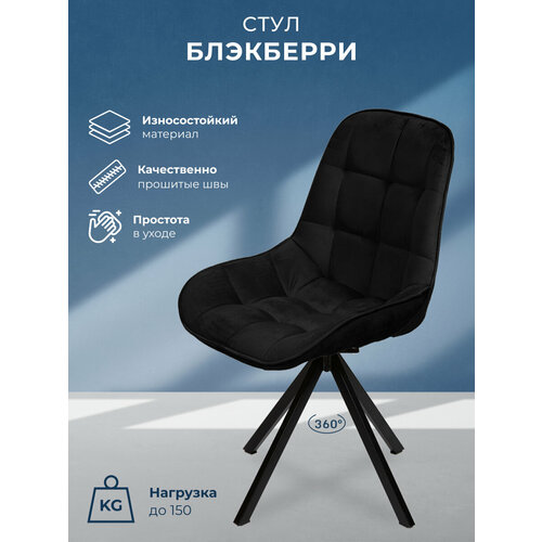 Стул для кухни, дома, офиса Блэкберри, черное поворотное основание 360°, Уютный мастер, чёрный